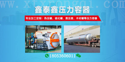 您好,歡迎來到山東鑫泰鑫智能裝備有限公司網站!我們為您提供各種規格的硫化罐、熱壓罐、蒸壓釜、木材罐等壓力容器設備及服務。